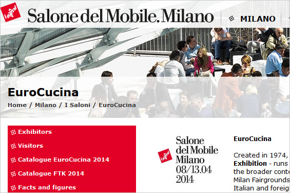 EuroCucina tiene alrededor de 130 expositores ocupando más de 24.000 m2, esta gran feria de Europa es única en su área. Su éxito está asegurado por el número de visitantes profesionales que en la exposición pasada fue de 311.781.